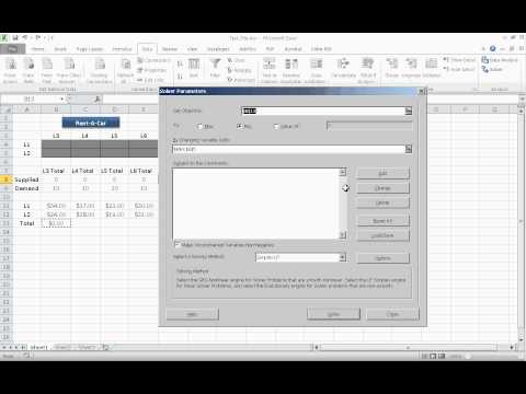 NOTE: For best viewing, please go to full-screen mode and increase your volume. Written guidance may be found below: This is a demonstration of MS Excel's Solver Add-In. Solver is a free piece of software already installed in Excel. To activate it: 1. Go to the Files tab 2. Click "Options" 3. Click "Add-Ins" 4. Select Solver and click OK Solver allows users to solve optimization problems using three methods, the most common being the Simplex LP method for linear programming problems. Linear programming problems occur in blending, transportation, and production problems. Whether you're shipping vehicles, mixing nutrients in dog food, or building an investment portfolio subject to user constraints, Solver can be of great help. Disclaimer: I do not own the rights to any Microsoft product.