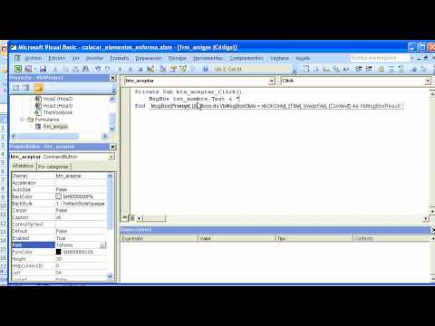 Describe la forma de colocar controles ( button, textbox, label ) y modificar sus propiedades en un userform ( formulario ) de Ms Excel 2007, usando el editor de VBA